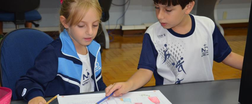 Foi passando pelas estações montadas que, em aula da disciplina de Ciências, os estudantes matriculadas no 2º Ano do Ensino Fundamental do Colégio Notre Dame Rainha reconheceram alimentos saudáveis e identificaram sua origem.