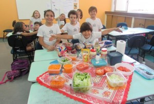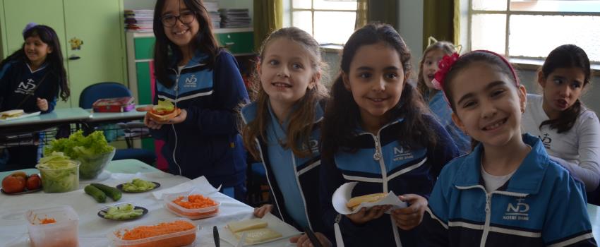 Por isso, após estudo sobre as partes das plantas e suas funções, os educandos matriculados no 3º Ano do Ensino Fundamental do Colégio Notre Dame Rainha aprenderam sobre os principais nutrientes dos vegetais consumidos pelas pessoas. Integrando esses conhecimentos, as crianças, então saborearam um sanduíche preparado com folhas, frutos e raízes, como alface, tomate, pepino e cenoura.