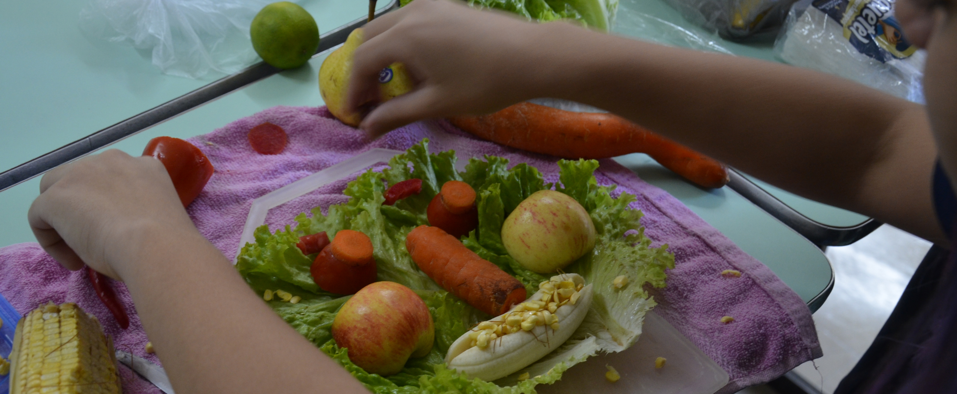 Por isso, os educandos foram desafiados a elaborar, a partir de vegetais, suas próprias obras de arte – que, posteriormente, seriam saboreadas.