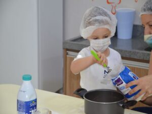 Desse modo, conforme esclarece a docente Alessandra Martins, os educandos foram estimulados à conversação enquanto misturavam os ingredientes que dariam origem ao alimento.