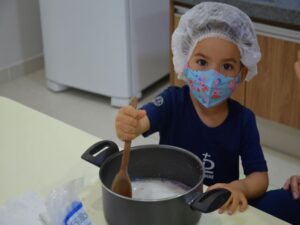 Desse modo, conforme esclarece a docente Alessandra Martins, os educandos foram estimulados à conversação enquanto misturavam os ingredientes que dariam origem ao alimento.