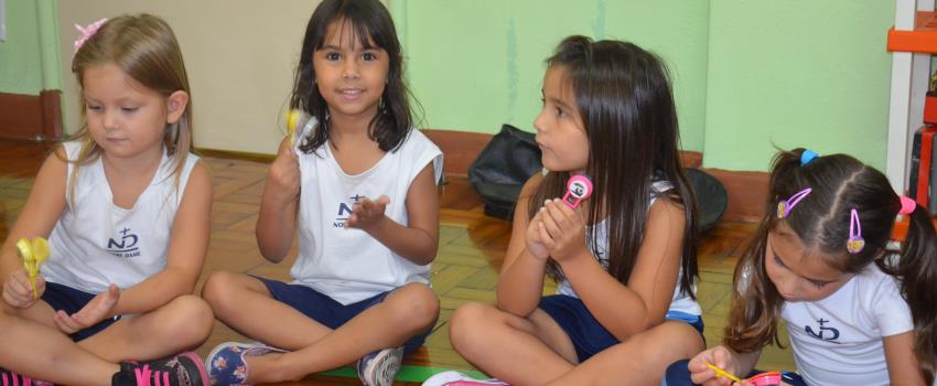 musicaExtremamente importantes para o desenvolvimento infantil, uma vez que estimulam a atenção, a concentração, a coordenação motora, a percepção e a noção de ritmo, as aulas de Iniciação Musical – oferecidas pelo Colégio Notre Dame Rainha aos estudantes matriculados na Educação Infantil – estão sendo ministradas em um novo espaço.
