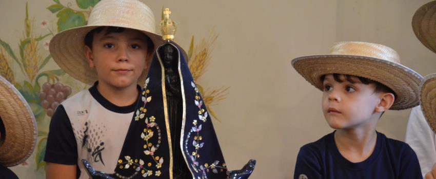 Na última quarta-feira (31), os educandos matriculados no Colégio Notre Dame Rainha participaram de celebração religiosa em homenagem à Maria. Reunidos na Capela da instituição de ensino, eles lembraram o centenário da aparição de Nossa Senhora de Fátima, os três séculos do encontro da imagem de Nossa Senhora Aparecida e os 72 anos da padroeira escolar – Nossa Senhora Rainha dos Apóstolos.
