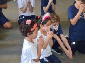 Impelidos a pausar suas rotinas para clamar pelo fim do conflito bélico no leste Europeu, discentes e docentes e funcionários escolares reuniram-se na capela do educandário e, em uníssono, entoaram preces pela harmonia entre os povos.