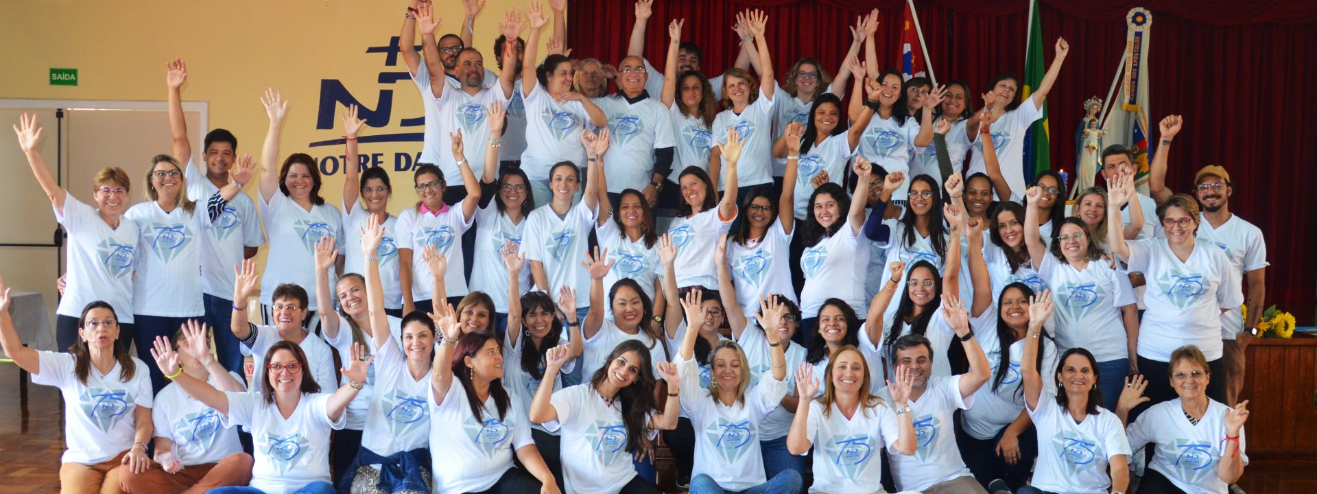 Além de participar de dinâmicas e oficinas, os educadores realizaram ginástica laboral. Por fim, eles ainda receberam a camiseta comemorativa aos 75 anos do Colégio Notre Dame Rainha dos Apóstolos.