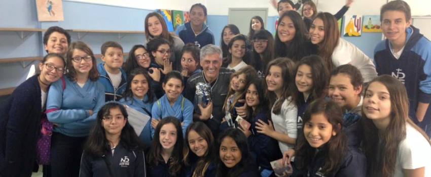 No último sábado (25), os estudantes matriculados na atividade extracurricular de Teatro receberam o ator, dublador e músico Mauro Gasperini. Integrante da dupla Mano a Mano e pai de estudante do Colégio Notre Dame Rainha, ele dividiu com os jovens detalhes da sua trajetória artística, as dificuldades da carreira e as alegrias vividas. Além disso, Mauro incentivou aqueles que desejam seguir a carreira artística, pois, de acordo com ele, por mais difícil que ela possa ser, é muito gratificante fazer aquilo de que se gosta.
