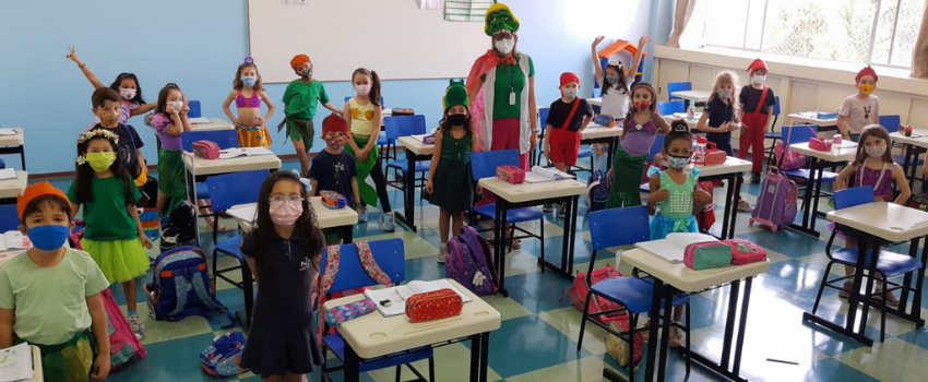 Caracterizadas como personagens folclóricos, as crianças matriculadas no 1º Ano do Ensino Fundamental assistiram, na sexta-feira (20), à aula ministrada com o intuito de celebrar a cultura brasileira. A atividade, no entanto, não foi a única idealizada pela equipe pedagógica do Colégio Notre Dame Rainha dos Apóstolos tendo em vista a comemoração, em 22 de agosto, do Dia do Folclore.