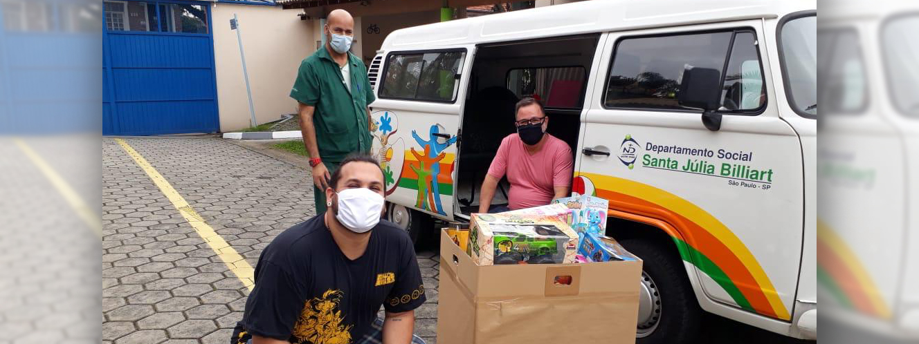 Com o intuito de contribuir com a alegria dos socioeducandos atendidos pelo Departamento Social Santa Júlia, bem como com a campanha “Natal dos Sonhos” – capitaneada pela Arquidiocese de São Paulo, eles aproveitaram sua passagem pela instituição de ensino, no sábado (05), para doar brinquedos em bom estado de conservação.