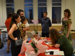 Atuando na construção de saberes na Educação Infantil do Colégio Notre Dame Rainha há 17 anos, a ex-aluna e escritora Mariana Jansen lançou, recentemente, o segundo livro infantil da sua carreira intitulado “Roda e Gira”. Utilizando-se da música e da poesia para versar sobre a temática da inclusão, a obra foi recebida com uma sessão de autógrafos especial, a qual foi realizada no Espaço Interativo do educandário. O evento contou com a participação de amigos, familiares e da comunidade educativa que, entre um autógrafo e outro, externaram a admiração sentida pela autora.