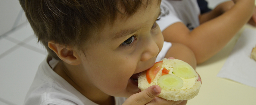 Os educandos do Jardim I da Educação Infantil, por exemplo, utilizaram a criatividade como ingrediente, a fim de elaborar sanduíches. Orientados pela educadora Larissa Fukuda e pela coordenadora Luciana Leite, eles preparam-nos com pepino e tomates – vegetais bastante utilizados em saladas e que, por muitas vezes, são rejeitados pelas crianças.