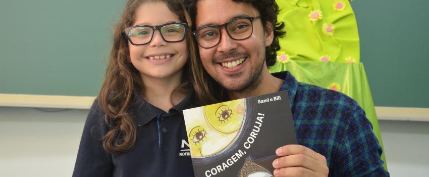 Um dos autores do livro paradidático “Coragem, Coruja!”, Bill, visitou os estudantes matriculados no 2º Ano do Ensino Fundamental do Colégio Notre Dame Rainha, na segunda-feira (24).