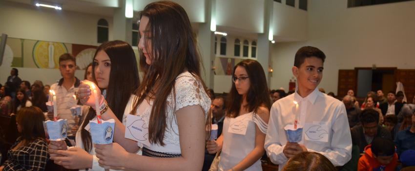 Cerca de 20 estudantes do Ensino Médio do Colégio Notre Dame Rainha reiteraram a fé cristã, confirmando o seu batismo por meio do sacramento da Crisma, em celebração realizada na última sexta-feira (18), na Paróquia Nossa Senhora Rainha dos Apóstolos, com a presença do Bispo Auxiliar de São Paulo, Eduardo Vieira dos Santos.