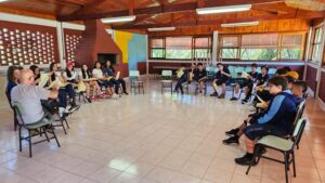 Trazendo à tona valores que ultrapassam o campo conceitual e se manifestam no cotidiano, tais como a empatia, a espiritualidade, a humildade, a responsabilidade e a solidariedade, os adolescentes expressaram, com autenticidade, aquilo que reconhecem em sua trajetória escolar. Ao longo do dia, ainda participaram de momentos de espiritualidade e integração.