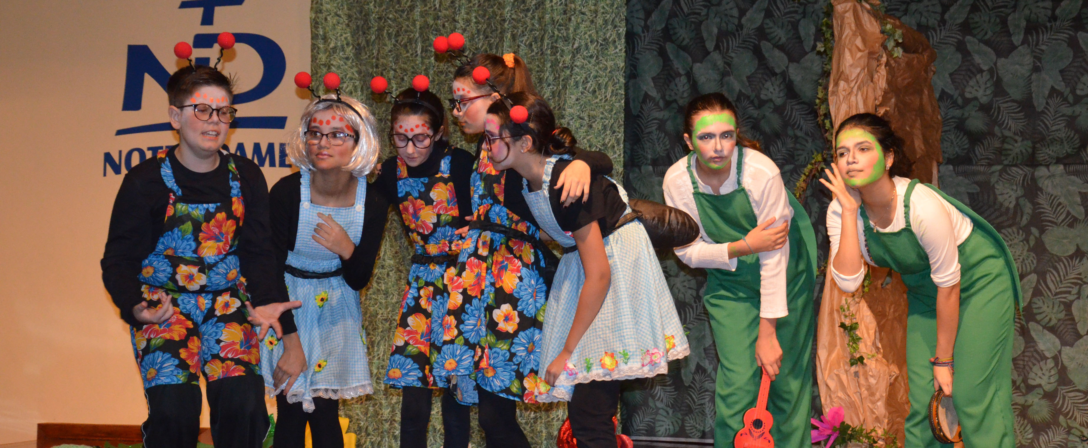 Na última quinta-feira (18), as crianças matriculadas na Educação Infantil e no Ensino Fundamental I do Colégio Notre Dame Rainha dos Apóstolos assistiram a uma adaptação para a fábula “A Cigarra e a Formiga”, apresentada pelo Grupo de Teatro da instituição de ensino.