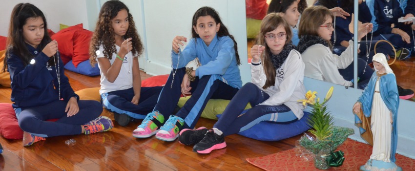Durante a última aula de catequese do semestre, as crianças receberam o terço que os acompanhará no momento da primeira comunhão, que será realizada em 03 de outubro, na paróquia Nossa Senhora Rainha dos Apóstolos.