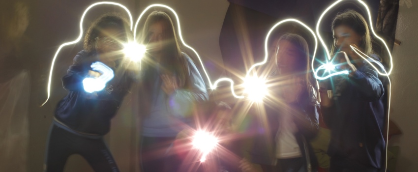 Durante aula da disciplina de Artes, os estudantes matriculados no Ensino Fundamental II do Colégio Notre Dame Rainha exercitaram a técnica de Light Painting.