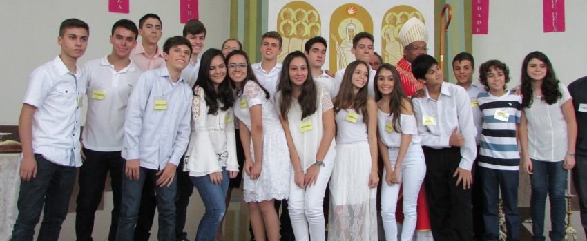 Alguns estudantes do Ensino Médio do Colégio Notre Dame Rainha receberam o Sacramento da Crisma, no domingo (08), em celebração realizada na Paróquia Nossa Senhora Rainha dos Apóstolos.