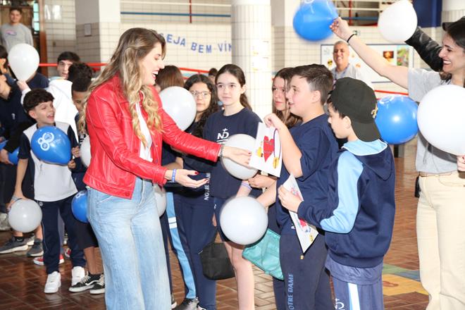 Patrícia também conscientizou quanto aos critérios e procedimentos que envolvem o transplante de órgãos, estimulando os pré-adolescentes e adolescentes à reflexão acerca de um ato que permite ressignificar vidas. Por fim, emocionou-se diante do retrato que, como símbolo de esperança e perseverança, é vislumbrado pelos educandos do Colégio Notre Dame a cada aula de Educação Física, além de treinos e partidas em diferentes modalidades esportivas.