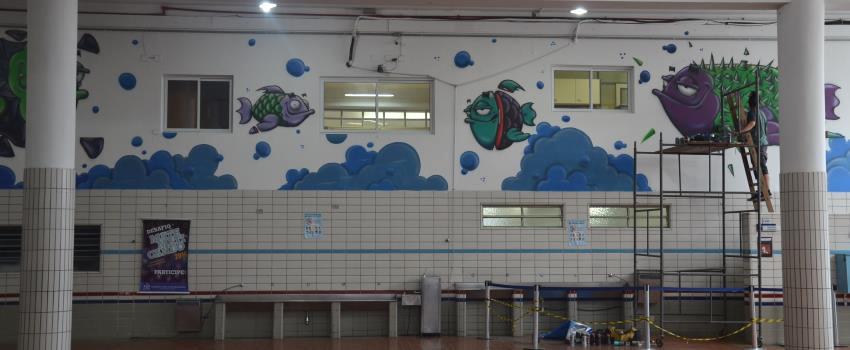 3O ex-aluno Guilherme Matsumoto – a pedido da atual diretoria do Grêmio Estudantil do Colégio Notre Dame Rainha e da psicopedagoga escolar, que coordena as ações dos representantes dos estudantes, Elaine Amorim – grafitou um painel no pátio principal da instituição de ensino.
