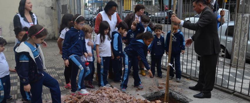As crianças matriculadas no Integral Notre Dame – uma atividade extracurricular oferecida aos estudantes da Educação Infantil e do Ensino Fundamental I do Colégio Notre Dame Rainha – estão envolvidas, durante todo o ano letivo, em um projeto pedagógico que as incentiva a preservar do meio ambiente. Por isso, além de cultivar plantas em uma horta suspensa, elas também plantaram uma muda de Ipê, na Paróquia Rainha dos Apóstolos.