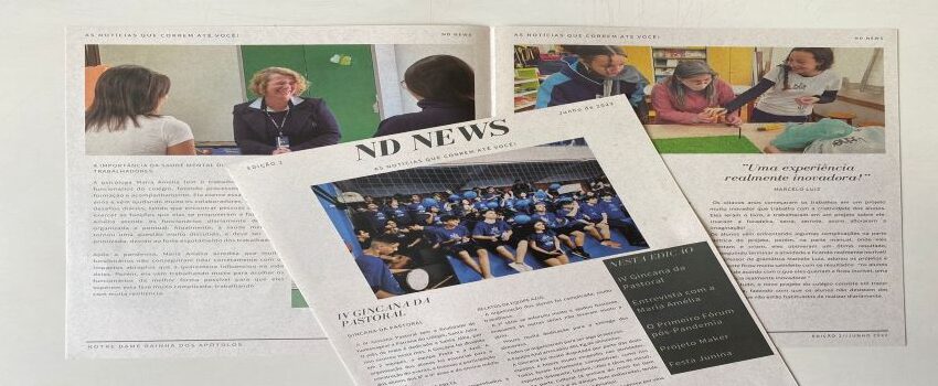 Contemplando a proposta pedagógica do Novo Ensino Médio, a qual compreende a oferta de itinerários formativos como complemento à construção de saberes comuns, a produção do informativo ND News envolve adolescentes matriculados na 1ª e na 2ª Série do Colégio Notre Dame Rainha dos Apóstolos.