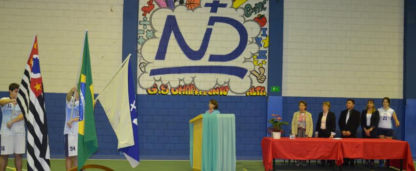 jendra085A competição escolar, que reúne equipes de basquete, futsal e vôlei de diferentes educandários paulistas, foi iniciada na segunda-feira (15), quando a diretora do Colégio Notre Dame, Irmã Elena Bini, presidiu a solenidade de abertura dos Jogos, da qual participaram gestores das instituições e representantes dos estudantes.