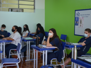 Voltado à reflexão acerca das diferentes formas de servir aos planos divinos, o Mês Vocacional foi a motivação para que Irmãs de Notre Dame socializassem com os estudantes os acontecimentos que perpassam a vida religiosa consagrada. Afinal, durante a última semana de agosto, os pré-adolescentes e os adolescentes matriculados no Ensino Fundamental e no Ensino Médio do Colégio Notre Dame Rainha dos Apóstolos receberam-nas em aula.