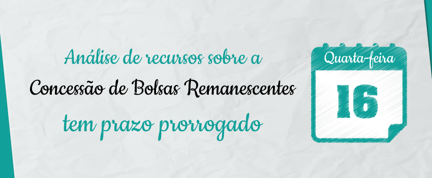 A Comissão Interna de Concessão de Bolsa de Estudo Filantrópica informa que devido à quantidade expressiva de recursos referentes ao Processo de Concessão de Bolsas Remanescentes para o ano letivo de 2016, o prazo de conclusão das análises será estendido. Por isso, a divulgação dos pareceres será divulgada somente na quarta-feira (16).