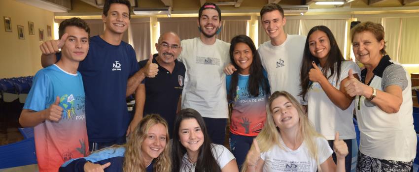 Mesmo que a Gincana Pastoral do Colégio Notre Dame Rainha aconteça somente em abril, os adolescentes organizadores – aqueles que integram a Juventude Notre Dame – já se reúnem, sob a supervisão dos agentes de Pastoral, Irmã Lurdes Stefanello e Francisco Rocha, para celebrar e finalizar o planejamento da competição.