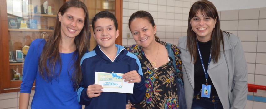 Depois de terem solucionado as questões do Desafio Matematicando, os educandos que tiveram os melhores desempenhos da competição escolar, tanto do Ensino Fundamental II como do Ensino Médio, foram premiados pela instituição de ensino.