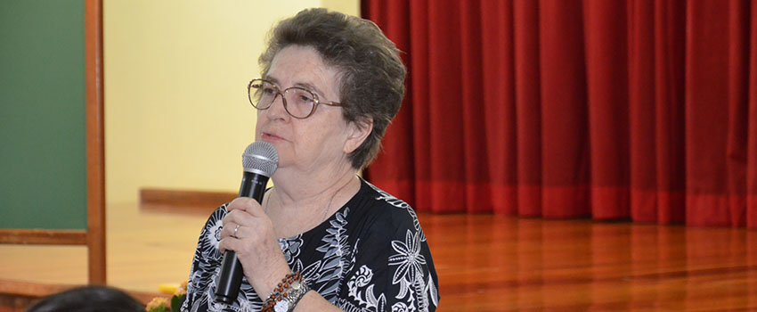 No sábado (17), durante Encontro de Formação Continuada, a representante da Congregação de Nossa Senhora lembrou aos educadores aspectos da vida de Santa Júlia Billiart – cujo carisma inspira a atuação das Irmãs de Notre Dame.