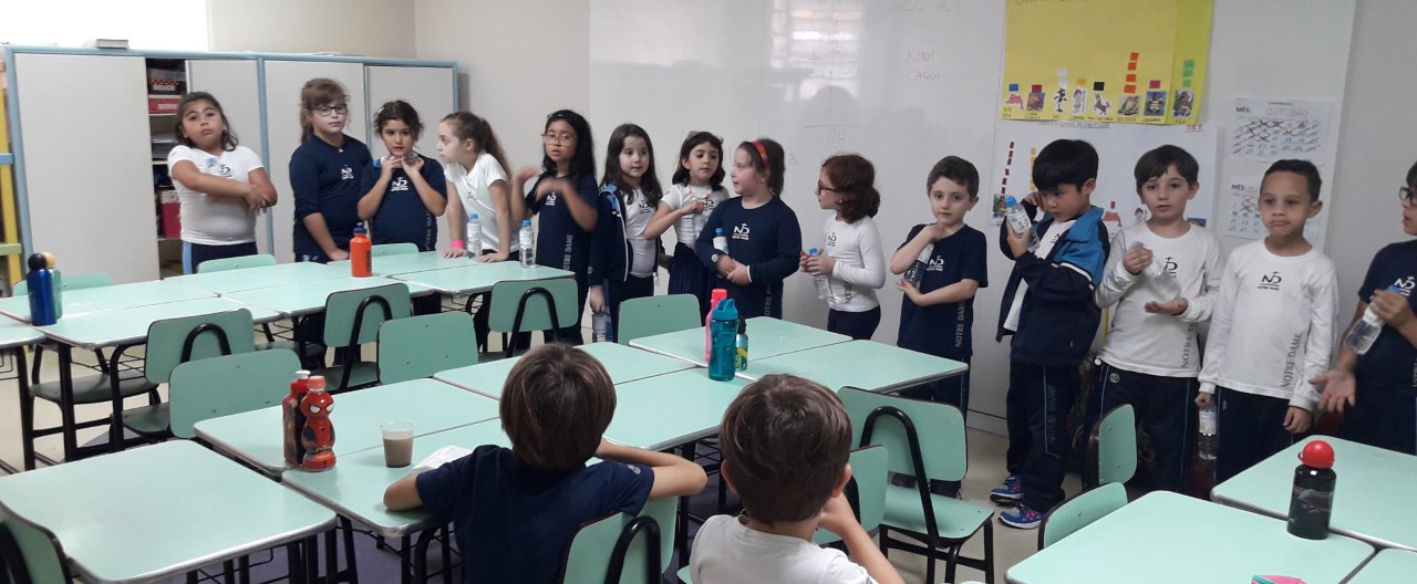 Após a aula, na qual puderam experimentar a educação ecológica proposta no Ensino Fundamental da Rede de Educação Notre Dame – voltada a conhecimentos e práticas que levam os educandos a refletir a respeito de seus comportamentos e valores, gerando responsabilidades com o cuidado do planeta -,  foram presenteadas com uma garrafinha de água, cujo rótulo foi personalizado pelos vistantes.