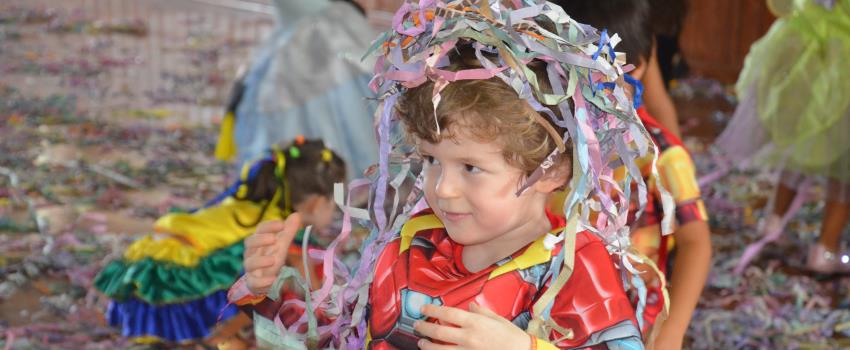 DSC_0001Com o intuito de resgatar o carnaval tradicional, no qual usavam-se máscaras e cantarolavam-se marchinhas, o Colégio Notre Dame Rainha promoveu um baile. No auditório da instituição de ensino, os estudantes matriculados na Educação Infantil e no 1º e no 2º Ano do Ensino Fundamental divertiram-se, com muita música e serpentina. Eles, ainda, participaram de desfile de fantasias, no pátio do Colégio.