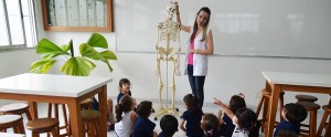 Em visita ao Laboratório de Ciências, crianças empreendem estudo sobre o esqueleto
