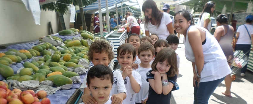 Por isso, com o intuito de apresentar aos estudantes do Jardim II a grande variedade de frutas, legumes e verduras capazes de colorir o prato e adicionar mais sabor às refeições, o Colégio Notre Dame Rainha levou-os até a feira livre da Vila Monumento.